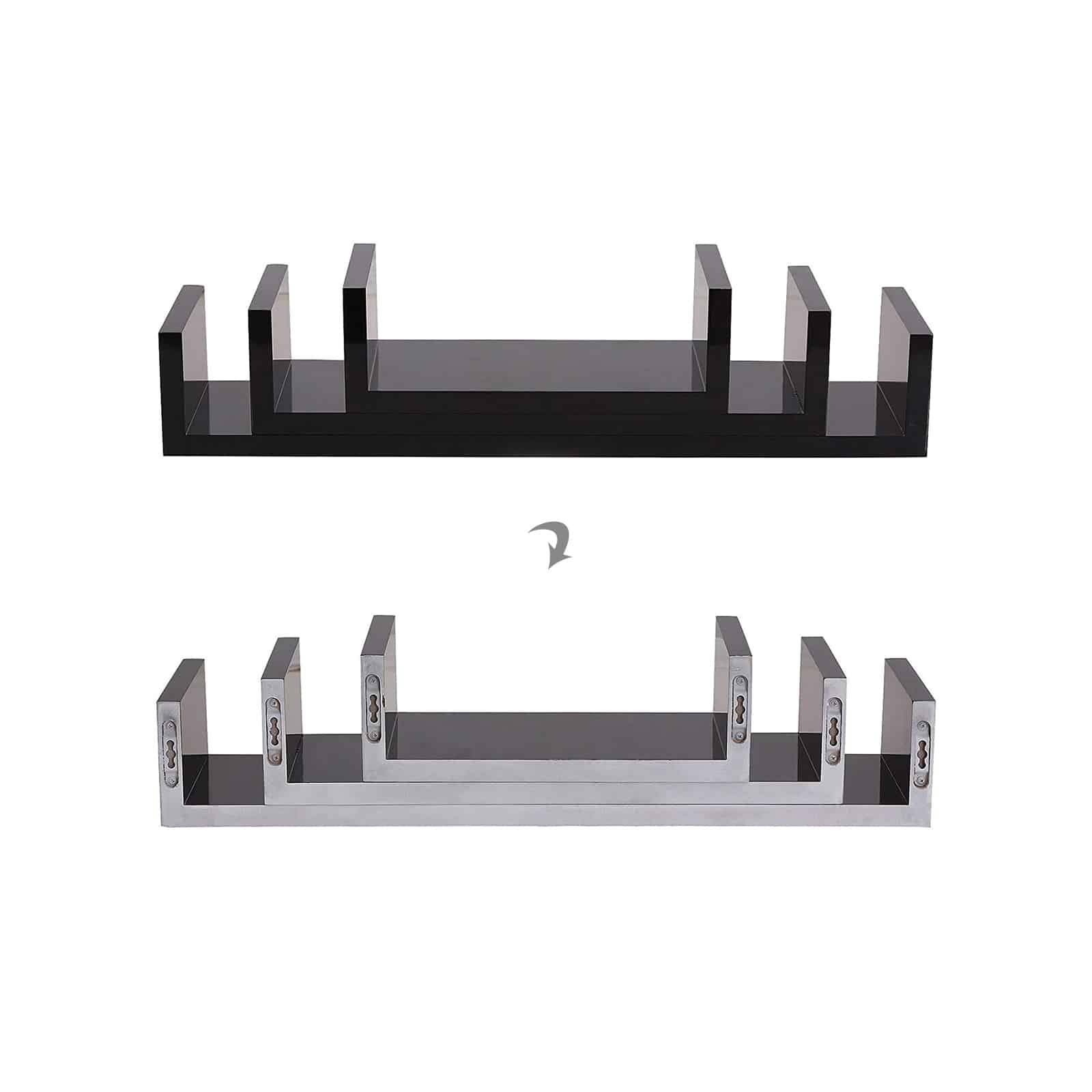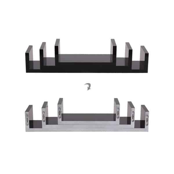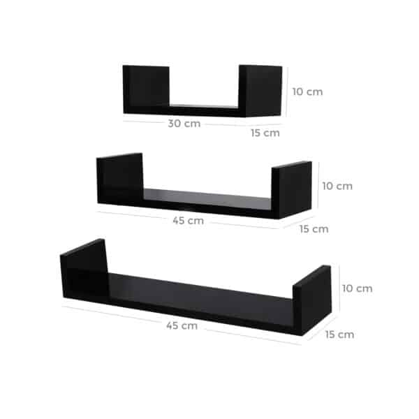 Šis madingas 3 U formos lentynų rinkinys tikrai traukia akį! Songmics lentynų komplektą sudaro medžio dulkių plokštė (MDF)s, kurios buvo išbandytos pagal E1 standartą. Jis yra atsparus drėgmei, nėra lengvai deformuojamas ir turi didelį atsparumą. Lengva montuoti dėl integruoto nematomo sieninio laikiklio. Naujo dizaino ir modernaus stiliaus lentynų rinkinys yra ideali vieta knygoms, kompaktiniams diskams ir kitiems smulkiems daiktams laikyti. Kaip sieninė lentyna ar tiesiog laisvai stovinti kaip dekoracija – kilnaus retro stiliaus lentyna yra praktiškas ir dekoratyvus daiktas kiekvienuose namuose!