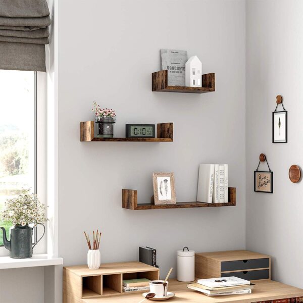 Šios plaukiojančios lentynos suteiks unikalumo jūsų namams dėl savo U formos ir vintažinės medienos išvaizdos. Ar vis dar trūksta centrinio elemento jūsų kambaryje? Šie produktai yra būtent tai, ko ieškote! Galite kabinti šias lentynas viename kambaryje arba naudoti atskirai skirtingose patalpose – pasirinkimas yra jūsų!