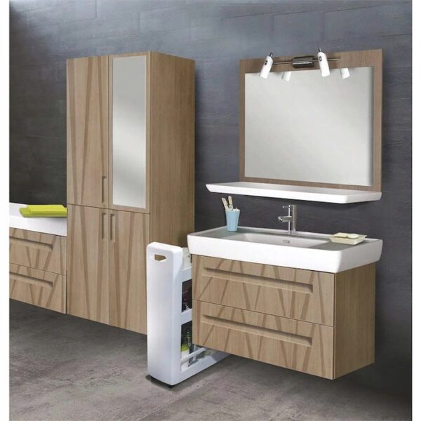 Universali ir daugiafunkcinė spintelė ant ratukų, tilps net ir labai mažoje erdvėje, suteikdama papildomos vietos daiktams laikyti. Tai leidžia maksimaliai išplėtoti mažą patalpą ir tuo pačiu leidžia patogiai pasiekti saugomus daiktus. Galima dėti tarp baldų arba ten, kur mažai vietos. Puikiai tiks mažam vonios kambariui, į lentynas nesunkiai susidėsite bet kokią kosmetiką ar skalbimo priemones. Tai palengvina nenaudojamos ar niekuo neišsiskiriančios erdvės formavimą virtuvėje, ją galite pastatyti tarp spintelių arba paslėpti po stalu, tada lentynose lengvai tilps skardinės, buteliai, virtuvės reikmenys ar virtuvės knygos. Spintelė turi 4 ratus, todėl ją lengva perkelti. Dėl baltos spalvos ir paprasto rašto jis tinka daugumoje interjerų, dėl savo paprastumo užima mažai vietos. Lengvas surinkimas, nereikia jokių įrankių Bet koks lentynų reguliavimas. Pasukami ratukai Spalva: balta, juodi ratai Matmenys: 79,0 cm x 60,0 cm x 22,0 cm Medžiaga: polipropilenas