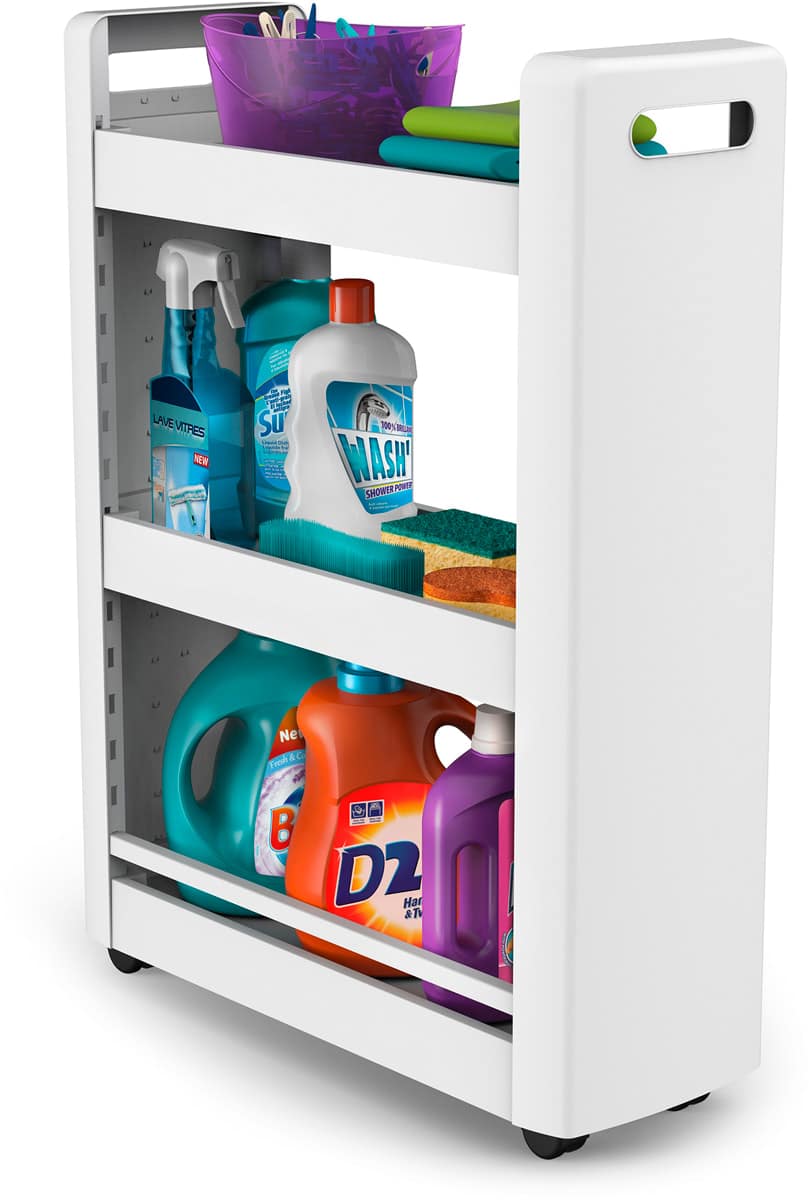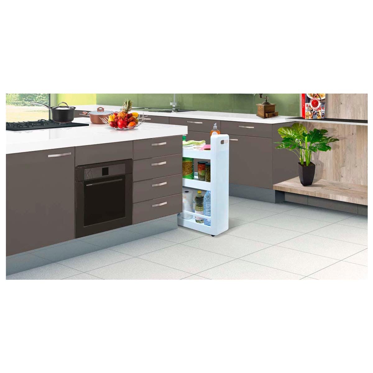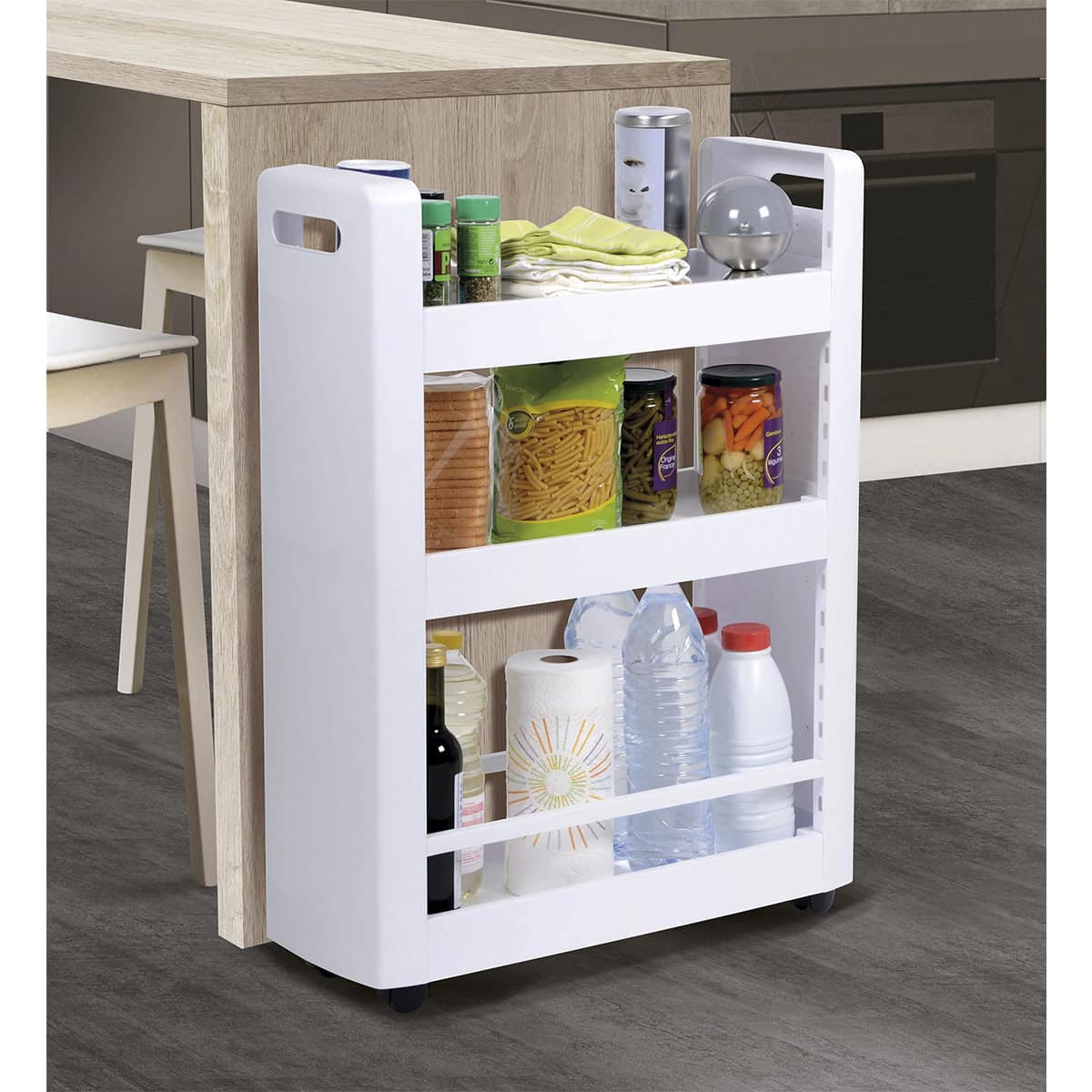 Universali ir daugiafunkcinė spintelė ant ratukų, tilps net ir labai mažoje erdvėje, suteikdama papildomos vietos daiktams laikyti. Tai leidžia maksimaliai išplėtoti mažą patalpą ir tuo pačiu leidžia patogiai pasiekti saugomus daiktus. Galima dėti tarp baldų arba ten, kur mažai vietos. Puikiai tiks mažam vonios kambariui, į lentynas nesunkiai susidėsite bet kokią kosmetiką ar skalbimo priemones. Tai palengvina nenaudojamos ar niekuo neišsiskiriančios erdvės formavimą virtuvėje, ją galite pastatyti tarp spintelių arba paslėpti po stalu, tada lentynose lengvai tilps skardinės, buteliai, virtuvės reikmenys ar virtuvės knygos. Spintelė turi 4 ratus, todėl ją lengva perkelti. Dėl baltos spalvos ir paprasto rašto jis tinka daugumoje interjerų, dėl savo paprastumo užima mažai vietos. Lengvas surinkimas, nereikia jokių įrankių Bet koks lentynų reguliavimas. Pasukami ratukai Spalva: balta, juodi ratai Matmenys: 79,0 cm x 60,0 cm x 22,0 cm Medžiaga: polipropilenas