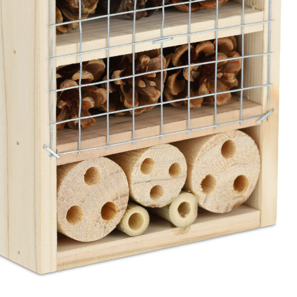 Pristatome jums elegantišką ir funkcionalų vabzdžių viešbutį, pagamintą iš natūralios eglės medienos. Šis bičių namelis ne tik puošia jūsų sodą ar balkoną, bet ir aktyviai prisideda prie rūšių apsaugos, suteikdamas vabalams, bitėms, musėms ir kitiems vabzdžiams saugią ir patogią vietą lizdui bei žiemojimui.