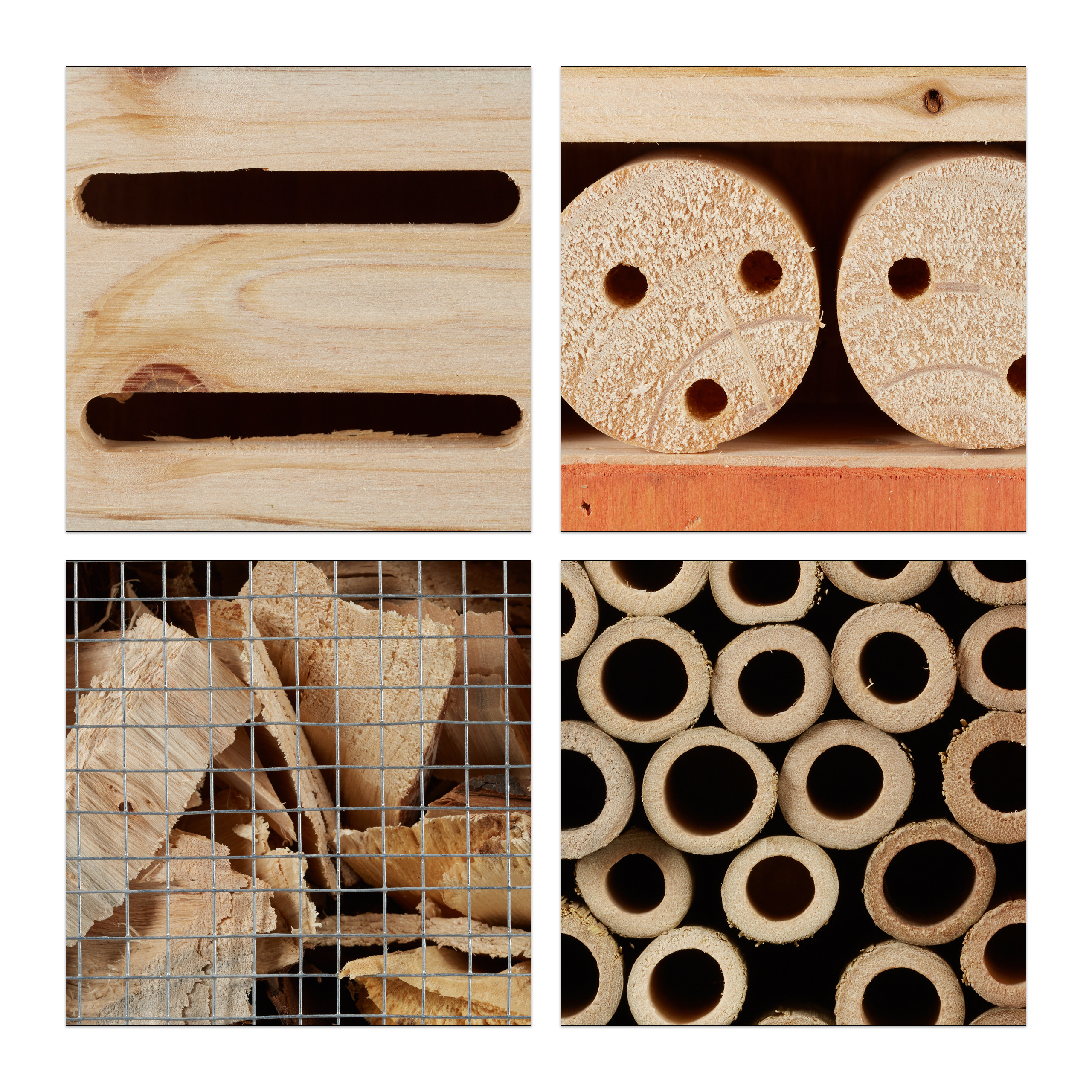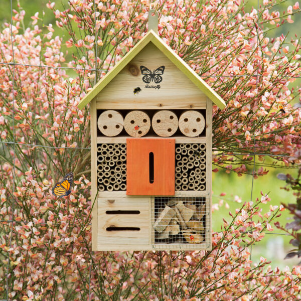 • Stebėjimo galimybė: stebėkite, kaip bitės sukasi lizdus bambukiniuose vamzdeliuose, drugeliai lenda pro plyšius, o boružės vinguriuoja medžio drožlėse.