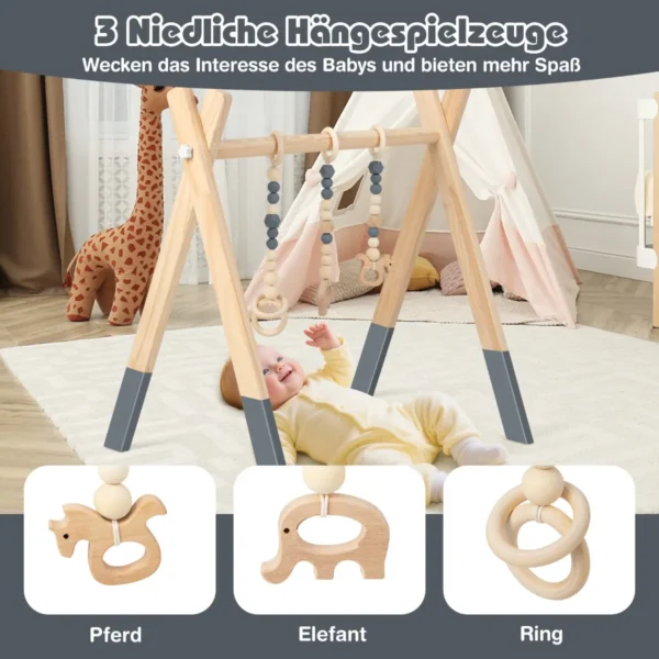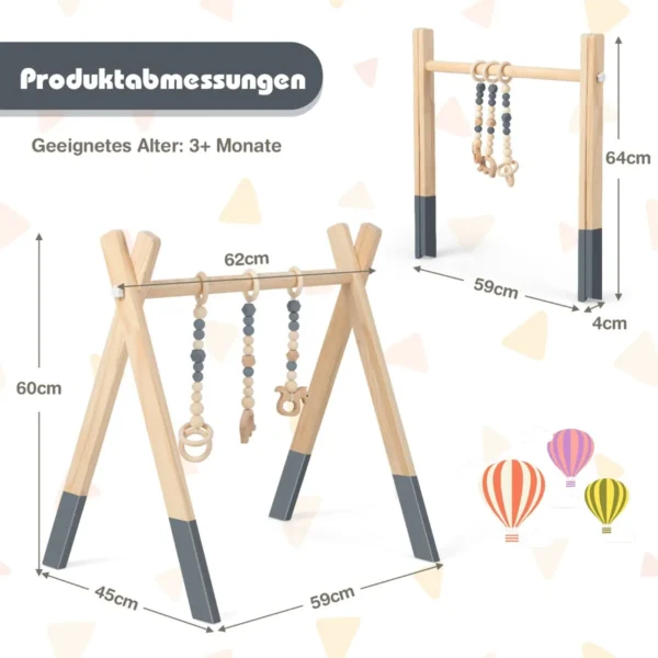 Vaikiška arka su žaislais yra skirta kūdikių žaidimams ir lavinimui. Šis medinis žaidimų centras, pagamintas iš aplinkai nekenksmingų medžiagų, skatina fizinį ir protinį vaikų vystymąsi nuo 3 mėnesių amžiaus. Natūralios spalvos ir šviesiai rudos bei pilkos spalvos derinys leidžia lengvai integruoti žaislą į bet kurį vaikų kambarį.