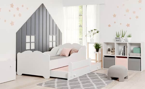 Vaikiška dvigulė lova Anna su čiužiniu ir apsauginiu barjeru yra puikus pasirinkimas jūsų vaikų kambariui. Ši lova ne tik patogi, bet ir saugi, todėl jūsų vaikai galės ramiai miegoti.