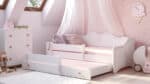 Vaikiška dvigulė lova Emma su čiužiniu ir apsauginiu barjeru yra puikus pasirinkimas jūsų vaikų kambariui. Ši lova ne tik užtikrina patogų miegą, bet ir suteikia saugumą dėl nuimamo apsauginio turėklo.