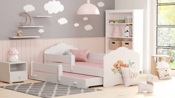 Vaikiška dvigulė lova Fala su čiužiniu ir apsauginiu barjeru yra puikus pasirinkimas jūsų vaikų kambariui. Ši lova yra ne tik patogi, bet ir saugi, nes apsauginis barjeras gali būti montuojamas tiek dešinėje, tiek kairėje pusėje.