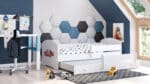 Vaikiška dvigulė lova Luk su čiužiniu ir apsauginiu barjeru yra puikus pasirinkimas jūsų vaikų kambariui. Ši lova yra ne tik patogi, bet ir funkcionali, su galimybe montuoti apsauginį barjerą tiek dešinėje, tiek kairėje pusėje.