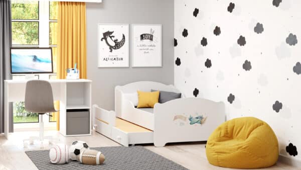 Vaikiška dvigulė lova Michas su čiužiniu ir apsauginiu barjeru yra puikus pasirinkimas jūsų vaikų kambariui. Ši lova ne tik užtikrina patogų miegą, bet ir suteikia saugumą dėl apsauginio barjero.