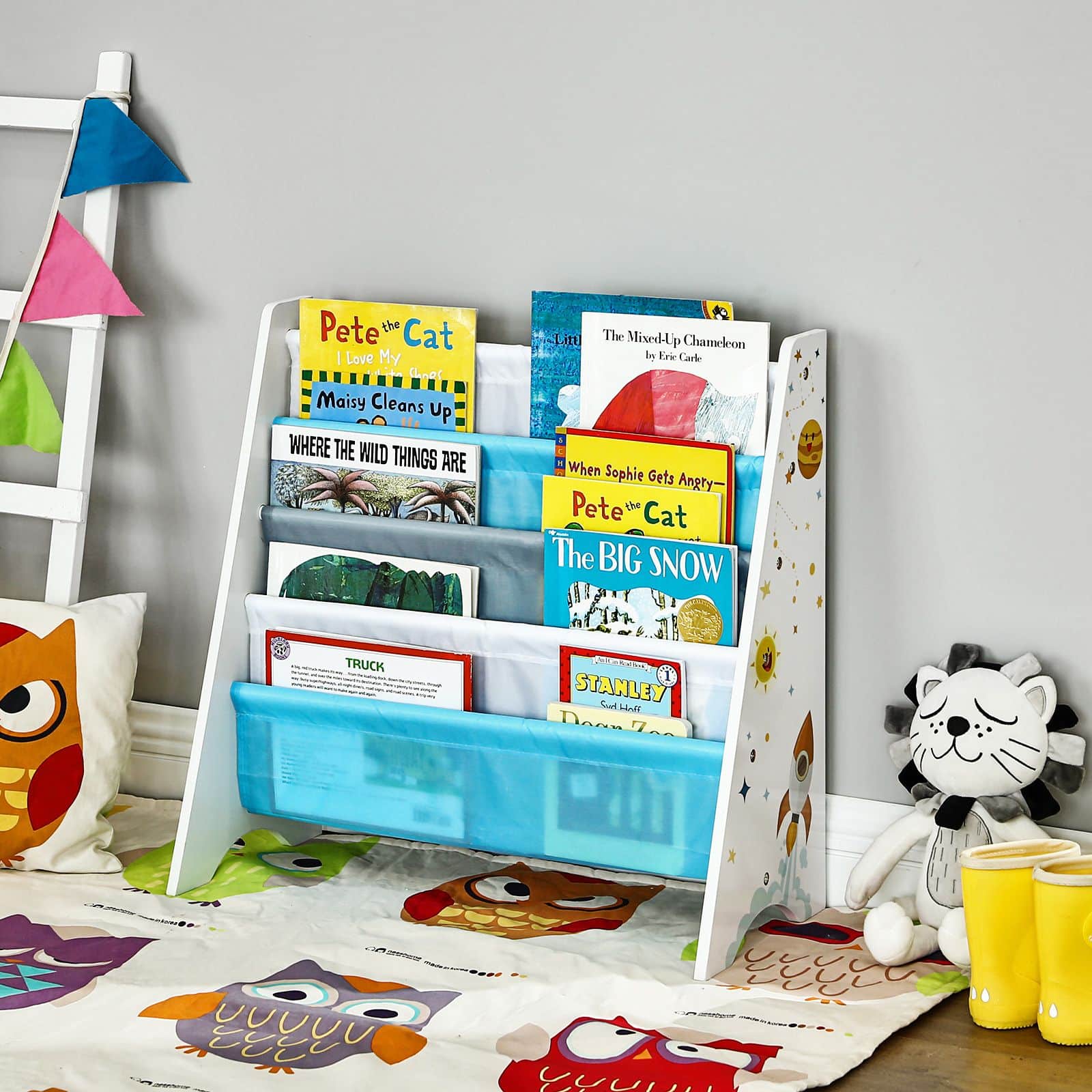 Vaikiška knygų lentyna, mėlynos / baltos spalvos, yra puikus sprendimas tvarkingai laikyti vaiko knygas ir žaislus. Ši lentyna ne tik funkcionali, bet ir stilinga, todėl puikiai tiks bet kuriame vaikų kambaryje.