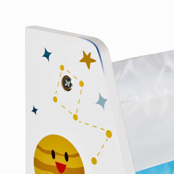 Pagaminta iš kokybiškos medžio drožlių plokštė (MDP) , lentyna yra tvirta ir ilgaamžė. Neaustinis audinys ir spalvoti popieriniai lipdukai suteikia lentynai žaismingumo ir unikalumo.