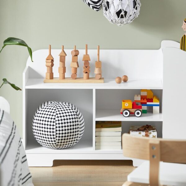Vaikiška lentyna 110x25x60 cm, baltos/šviesiai rudos spalvos, yra puikus sprendimas tvarkingam vaikų kambario ar žaidimų kambario organizavimui. Ši elegantiška ir minimalistinė lentyna ne tik padės palaikyti tvarką, bet ir taps stilingu interjero akcentu.