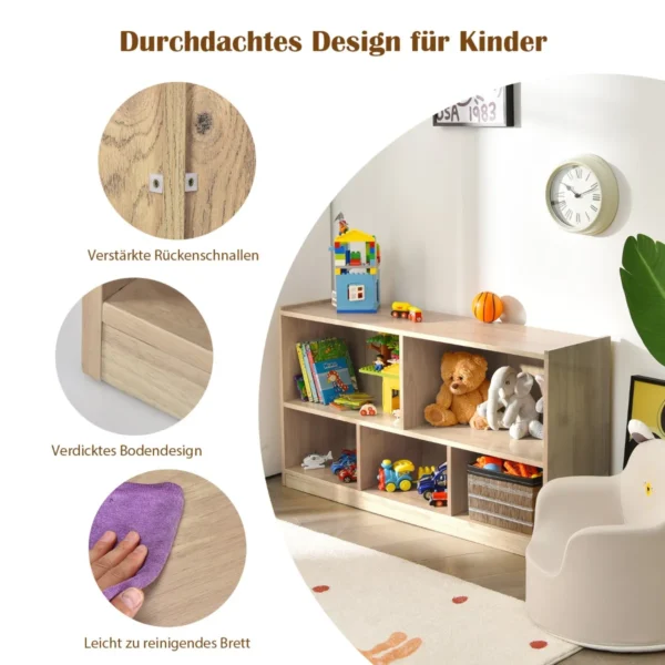 - Universali lentyna su 5 erdviais skyriais, gylis 28,5 cm, tinkama žaislams, knygoms ir kitiems vaikų daiktams laikyti.