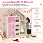 Vaikiška lentyna 129,5x34x156 cm, baltos ir rožinės spalvos, skirta tvarkingai vaikų kambario erdvei. Ši daugiafunkcinė spinta su daugybe laikymo vietų padeda organizuoti drabužius, žaislus ir kitas vaikų reikmenis.