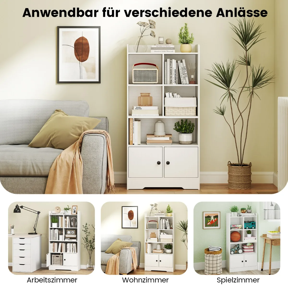 - Erdvi viršutinė lentyna ir 5 atviri skyreliai knygoms, žaislams ar dekoracijoms.