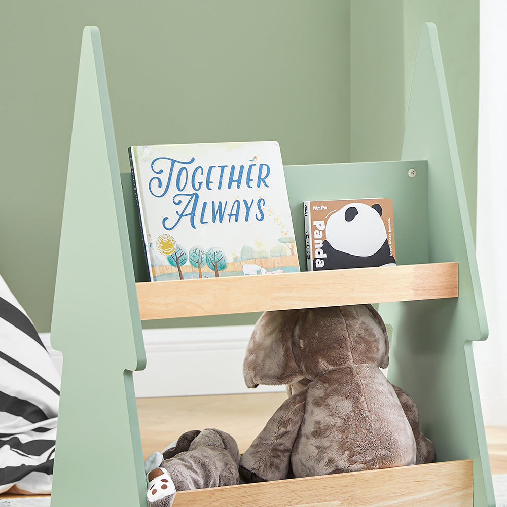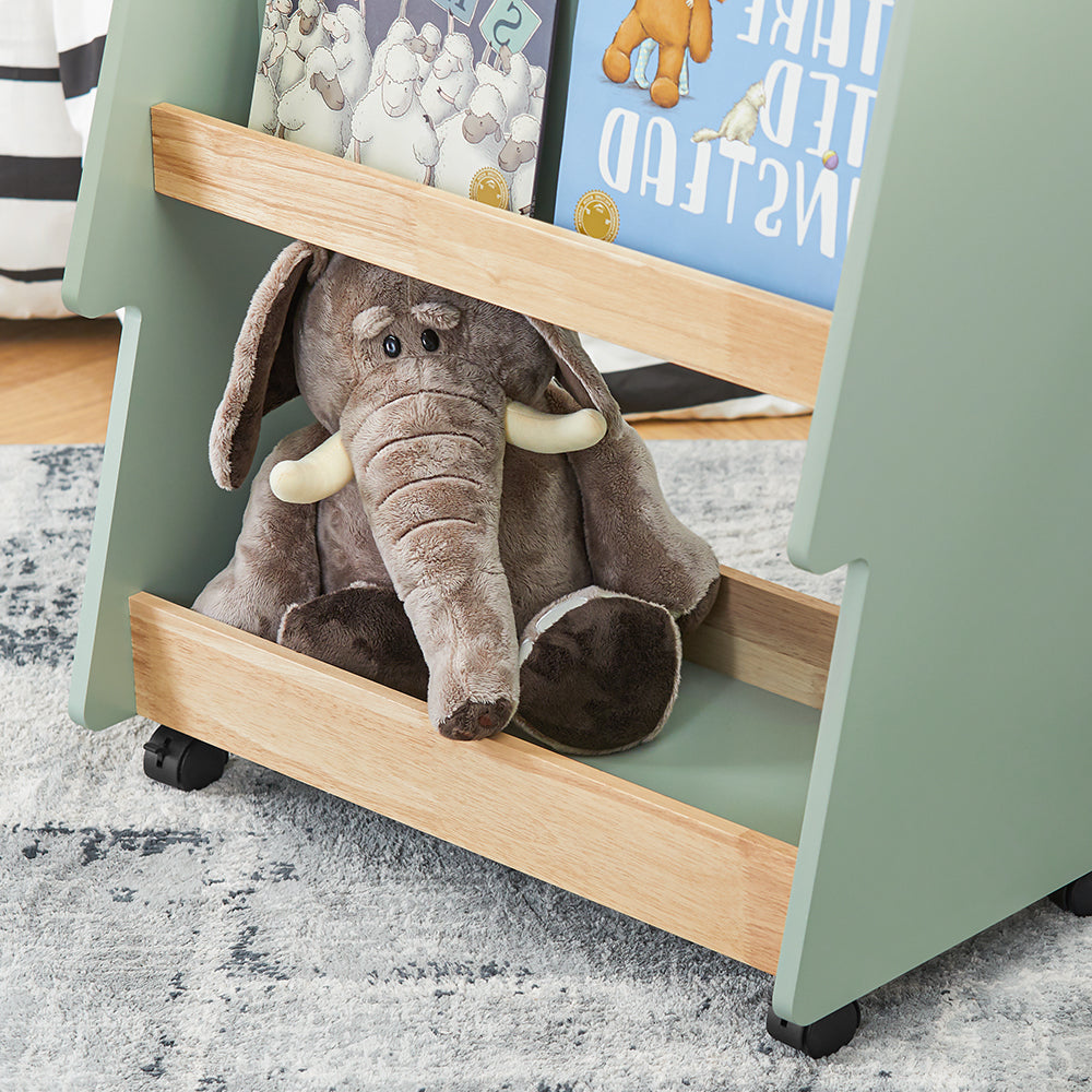 Lentyna su 4 ratukais yra lengvai perkeliamas net ir vaikams, o 2 ratukai turi stabdžius, todėl lentyną galima saugiai pastatyti norimoje vietoje. Ši žavinga lentyna, primenanti kalėdinę eglutę, skatina vaikų smalsumą ir aistrą skaitymui.