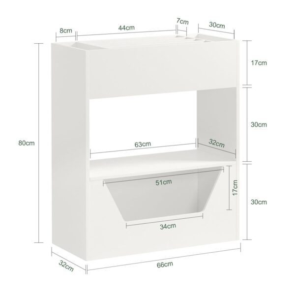 Pagaminta iš aukštos kokybės MDF (E1) medžiagos, ši lentyna yra tvirta ir ilgaamžė. Jos matmenys yra 66 cm ilgio, 32 cm pločio ir 80 cm aukščio, o svoris siekia 21,9 kg. Lentyna išbandyta ir gali atlaikyti iki 30 kg svorį.
