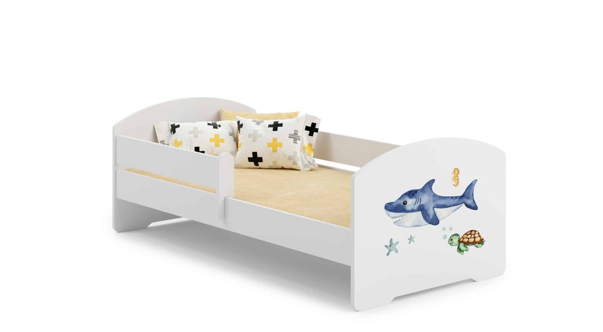 Vaikiška lova Luk su čiužiniu ir barjerine apsauga  164 cm x 85 cm x 63 cm, ryklys