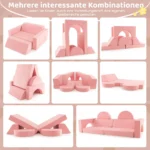 • 8 dalių modulinė vaikiška sofa, skirta vaikų kūrybiškumui ir žaidimams skatinti.
