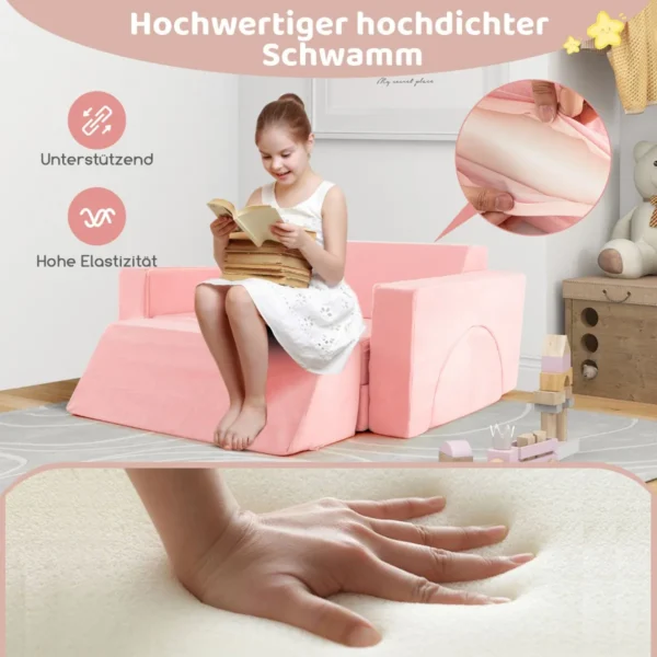 Vaikiška modulinė sofa 105,5x101x48cm rožinės spalvos – tai funkcionali ir saugi žaidimų erdvė Jūsų vaikui. Modularios pagalvėlės leidžia vaikams patiems kurti skirtingas formas pagal savo vaizduotę. Sofos kempinė ir zomšiniai užvalkalai užtikrina patogumą ir lengvą priežiūrą.