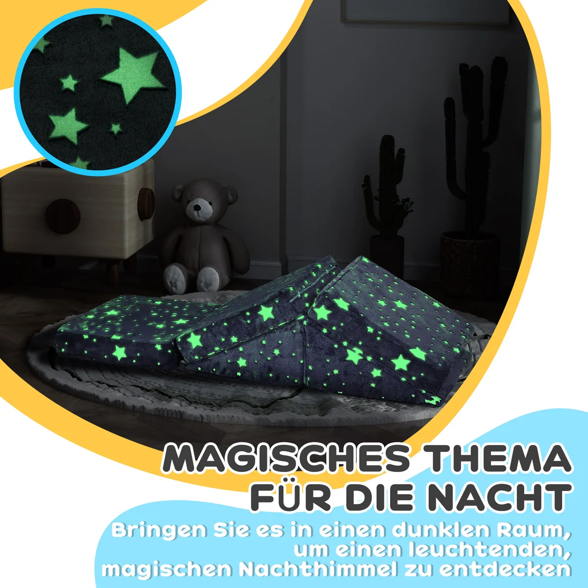 Atraskite AIYAPLAY žaidimų sofą vaikams – stebuklingą 5 dalių rinkinį, kuris virsta laiptais, miegamuoju čiužiniu ar įdomiu kliūčių ruožu. Užburiantis vaikiškos sofos ponis ir žvaigždės raštas šviečia tamsoje ir sužadina jūsų mažylio vaizduotę. Dėl didelio tankio paminkštinimo, kuris suteikia optimalią atramą, ir nuimamų, lengvai prižiūrimų užvalkalų, šis jaukus komplektas teiks didelį džiaugsmą daugelį metų.