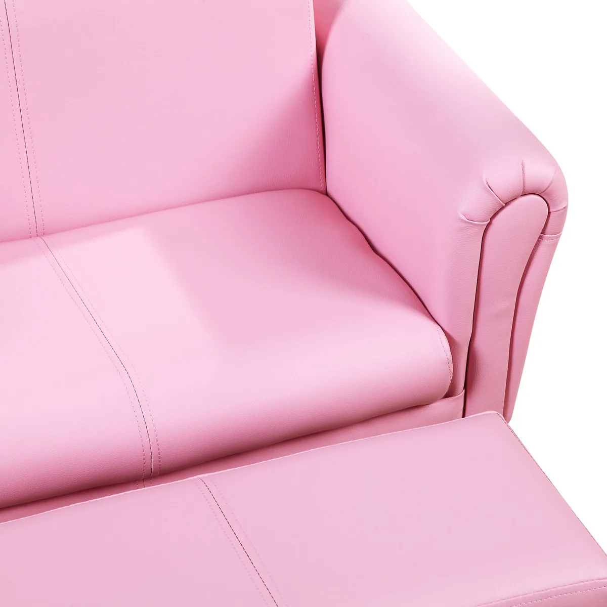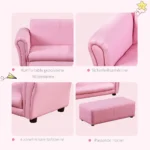 Net jei jūsų vaikai negali ramiai sėdėti: jūsų mažyliai neatsispirs šiai HOMCOM vaikiškai sofai su pufas! Modernus baltos spalvos dizainas, tvirtas medinis rėmas ir lengvai prižiūrimas dirbtinės odos užvalkalas daro šią vaikišką sofą praktiška ir patogia sėdyne. Padovanokite savo vaikams ir sau šį praktišką ir dekoratyvų baldų komplektą, kad galėtumėte atsipalaiduoti kartu ir tiesiog patogiai atsisėsti.