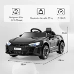 Vaikiškas elektrinis automobilis 104x58x41cm, juodos spalvos, yra oficialiai licencijuotas Audi RS GT modelis, sukurtas vaikams nuo 37 iki 95 mėnesių. Šis važiuojamasis žaislas su 12V baterija ir 2 varikliais užtikrina saugų ir patogų važiavimą įvairiomis dangomis tiek rankiniu, tiek nuotoliniu būdu.