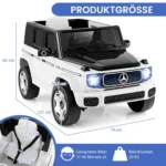 Vaikiškas elektrinis automobilis 121x74x62cm., baltos/juodos spalvos – puikus pasirinkimas vaikams nuo 37 iki 96 mėnesių. Šis licencijuotas Mercedes-Benz modelis leidžia mažiesiems mėgautis saugiu ir realistišku vairavimu su keturiais galingais varikliais bei įvairiomis valdymo funkcijomis.