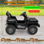 • Elektrinis vaikiškas džipas su paprastais rankiniais valdikliais ir nuotolinio valdymo pulteliu saugiam vairavimui.