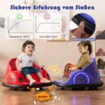 Vaikiškas elektrinis automobilis 66,5×64,5×39 cm, violetinės ir juodos spalvų, skirtas vaikų pramogoms ir motorinių įgūdžių lavinimui. Šis elektrinis buferinis automobilis turi du valdymo režimus: vaikų valdymą vairasvirtėmis ir tėvų nuotolinį valdymą, užtikrinantį saugumą.