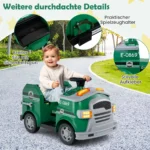 Vaikiškas elektrinis automobilis 86x48x52cm, žalios spalvos, skirtas vaikams nuo 37 iki 95 mėnesių. Šis automobilis turi 12 V bateriją ir du 30 W variklius, užtikrinančius sklandų bei stabilų važiavimą įvairiomis kelio dangomis.