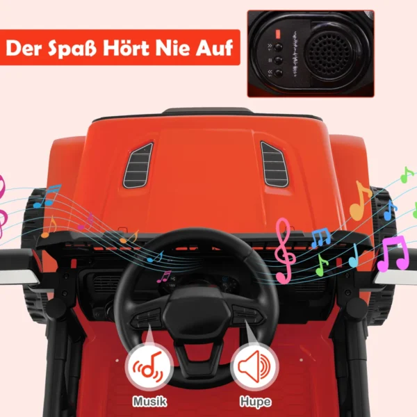Vaikiškas elektrinis automobilis 86×57,5×54,5 cm raudonos ir juodos spalvos skirtas vaikams nuo 3 metų. Šis 12 V elektromobilis su dviem 25 W varikliais leidžia vaikams saugiai važiuoti tiek savarankiškai, tiek tėvų valdomu nuotolinio valdymo pultu. Automobilis turi amortizatorius ir reguliuojamą saugos diržą, užtikrinančius patogumą ir saugumą vairuojant.