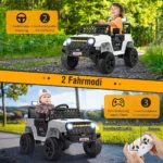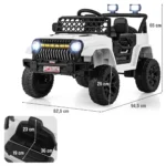 Vaikiškas elektrinis automobilis 94,5×62,5x65cm, baltos ir juodos spalvos, tinkamas vaikams nuo 3 metų amžiaus. Šis elektrinis vaikų sunkvežimis pasižymi dviejų valdymo režimų galimybe ir leidžia važiuoti įvairiomis kelio dangomis. Automobilis turi LED žibintus, muzikos funkciją ir saugumo elementus, užtikrinančius komfortą bei valdymo paprastumą.