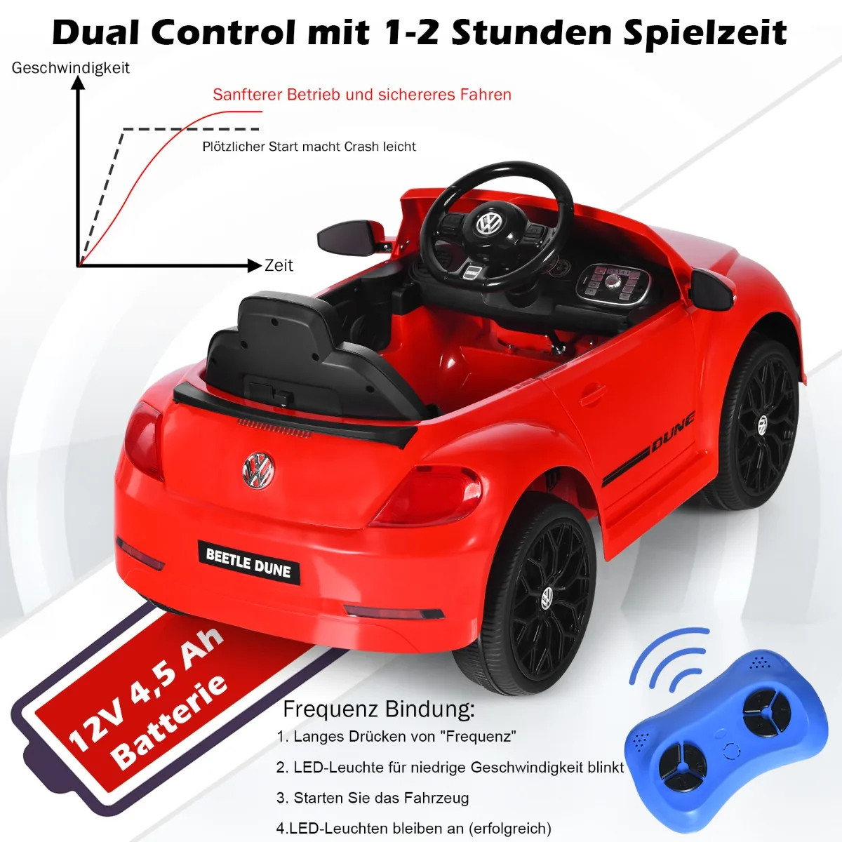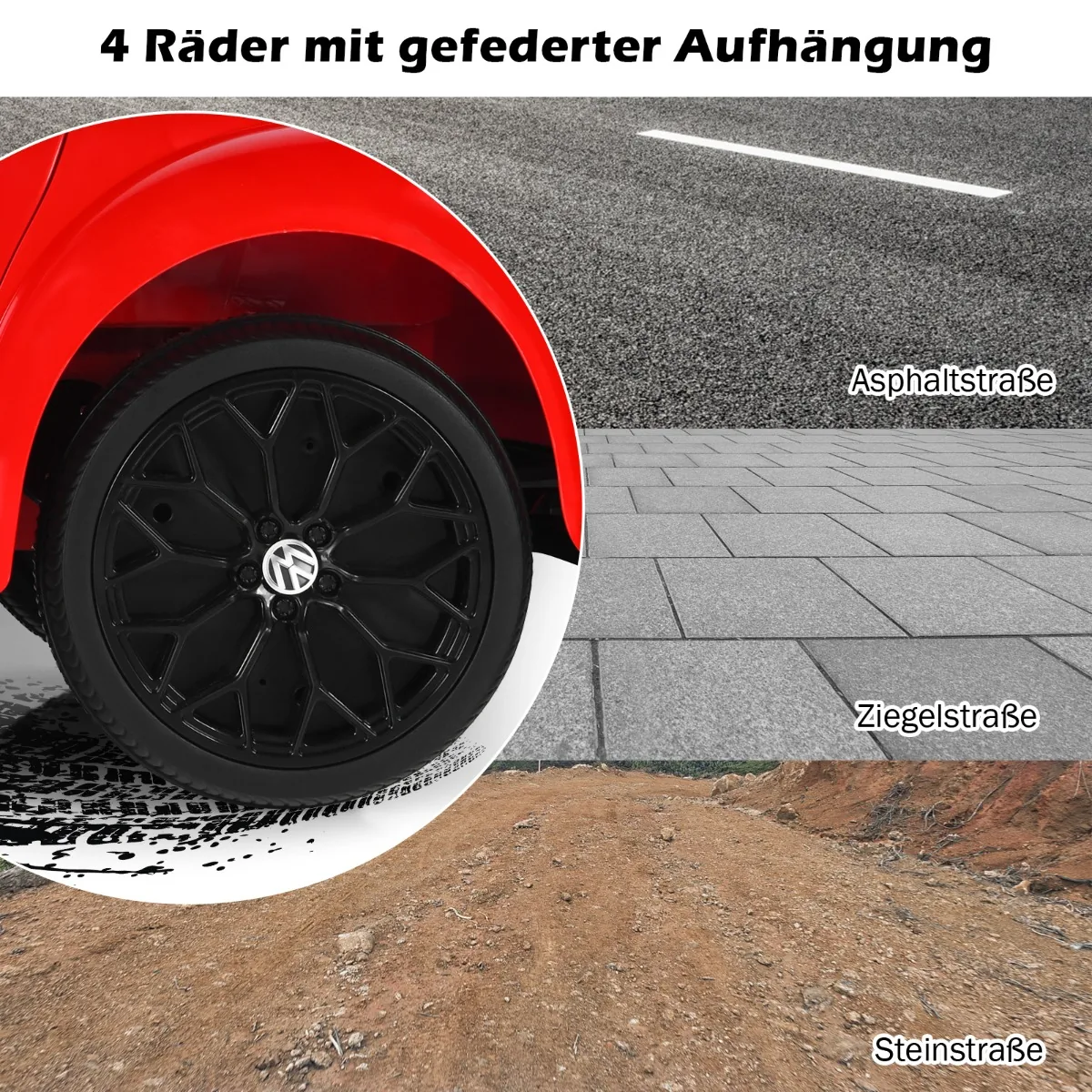 - Licencijuotas „Volkswagen Beetle“ vaikams skirtas elektrinis automobilis su raudonos ir juodos spalvos detalėmis.