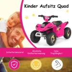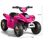 Vaikiškas elektrinis traktorius 73x40x44,5 cm rožinės ir juodos spalvos yra skirtas vaikų laisvalaikiui. Šis keturratis su akumuliatoriumi gali važiuoti pirmyn ir atgal bei užtikrina saugų ir patogų važiavimą įvairiais paviršiais tiek lauke, tiek viduje.