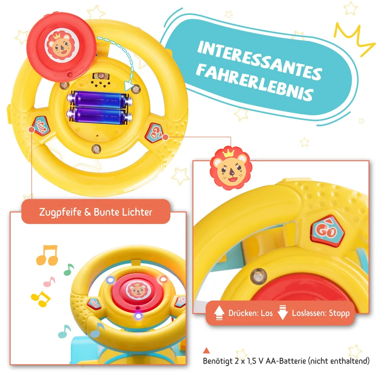 • Daugiafunkcis vairas su dviem mygtukais – vienas skleidžia garsus ir šviesas, kitas valdo traukinio judėjimą.