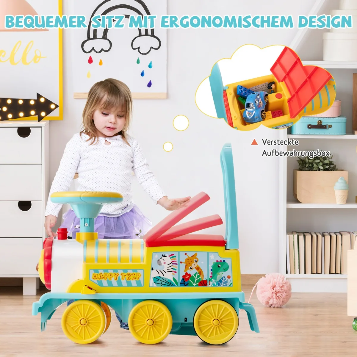 Vaikiškas elektrinis traukinys 51,5×21,5×34,5 cm, įvairių spalvų, suteikia vaikams smagias pramogas tiek patalpose, tiek lauke. Komplekte yra elektrinis lokomotyvas su valdymo mygtukais, ištraukiamais pedalais ir 16 bėgių dalių, leidžiančių sukurti traukinio trasą. Žaislas skirtas vaikams nuo 3 metų, sveriantiems iki 25 kg.