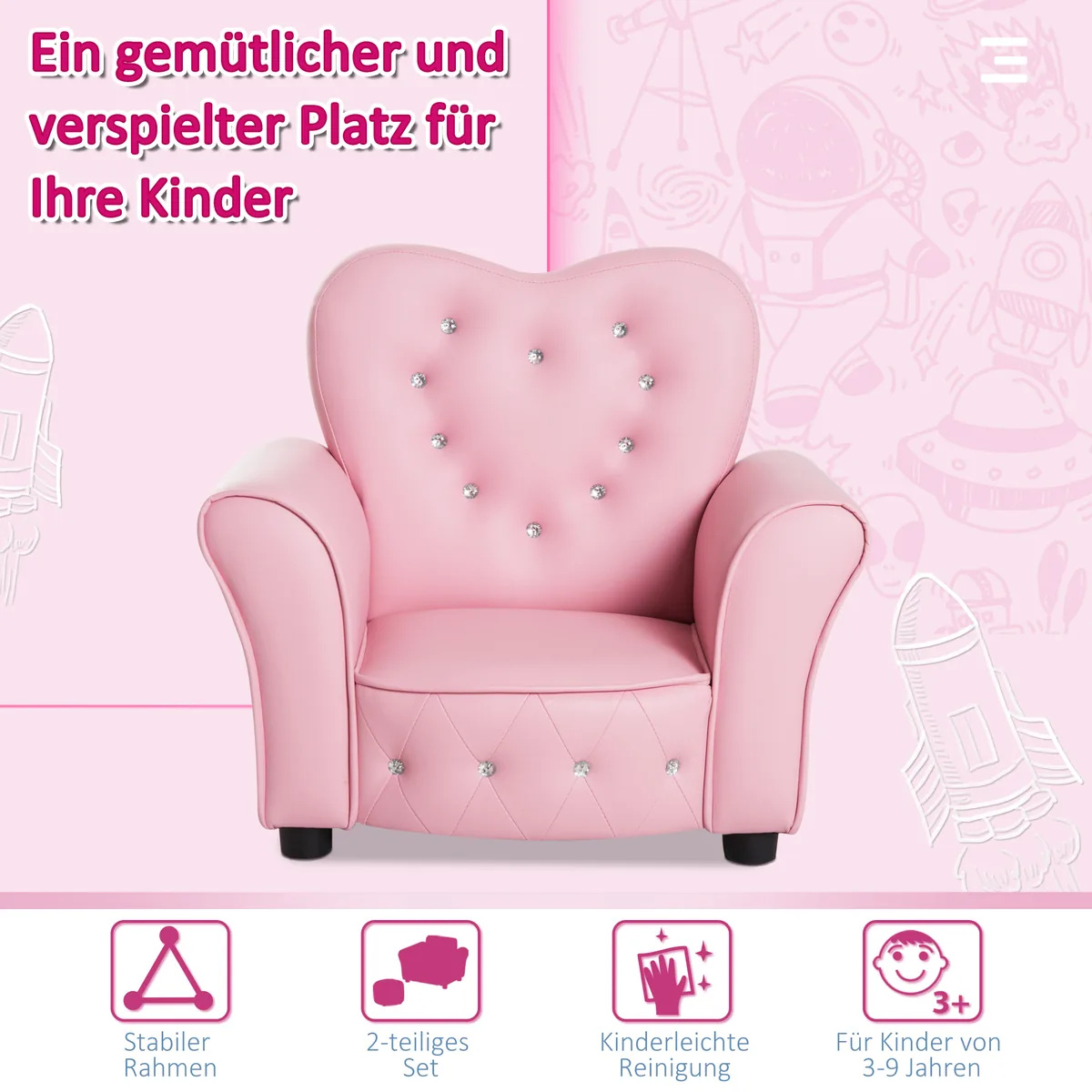 Mūsų širdies formos vaikiškas fotelis yra ideali dovana jūsų mažajai princesei ir yra daugiau nei tik puiki vaiko miegamojo ar žaidimų kambario puošmena. Pagrindas – tvirtas medžio masyvo rėmas, virš kurio patogų putplasčio sluoksnį ištemptas plonas PVC odinis dangtelis. Jame yra minkšta, paminkštinta sėdynė ir du patogūs porankiai. Fotelio atlošas ir dekoratyvinė apdaila išsiuvinėtos gražiomis krištolo sagomis. Tai kaip tik mažosioms princesėms. Du paminkštinti porankiai suteikia dar daugiau papildomo komforto. Įsimylėti skirtas dizainas, sudėtingas komfortas ir išskirtinis meistriškumas. Jūsų vaikai gulės ant mūsų vaikiško fotelio.