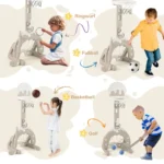 - Vaikiškas sporto centras keturių žaidimų viename: krepšinis, futbolas, golfas ir žiedų mėtymas.