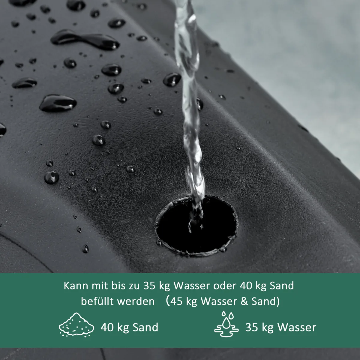 ✔ Pagrindą galima užpildyti 35 kg vandens, 40 kg arba daugiausiai 45 kg vandens ir smėlio, kad būtų geresnis stabilumas