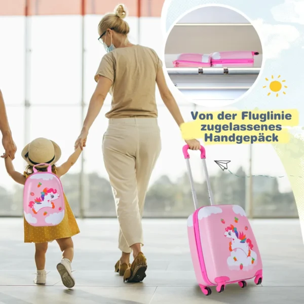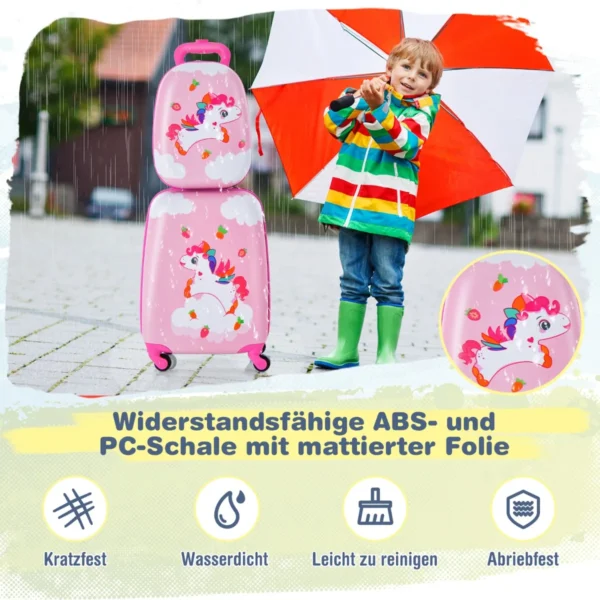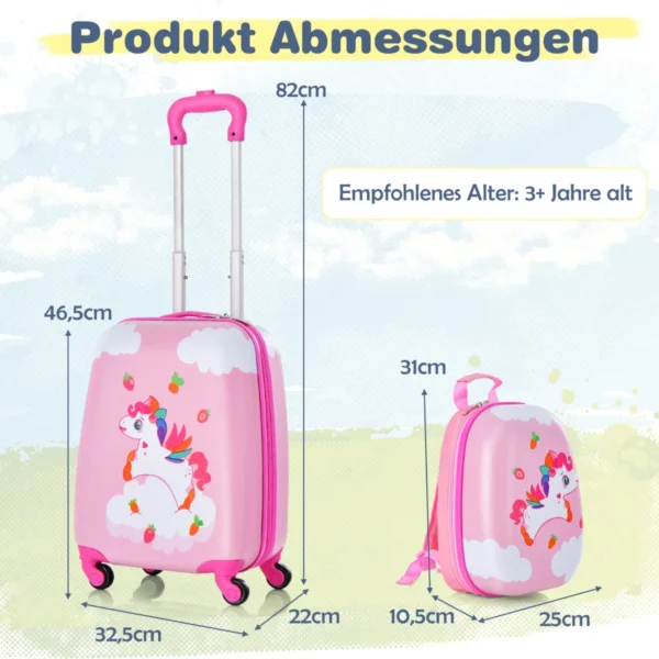 Vaikiškas lagaminas ir kuprinė, įvairių spalvų, puikiai tinka kelionėms ir kasdieniam naudojimui. Šis 2 dalių vaikiško bagažo rinkinys suteikia pakankamai vietos vaikų daiktams tvarkingai susidėti ir yra pritaikytas skrydžiams bei įvairioms kelionėms.