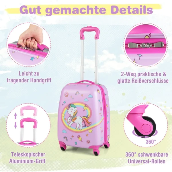 - Dviejų dalių vaikiško bagažo rinkinys – rankinis lagaminas ir kuprinė.