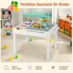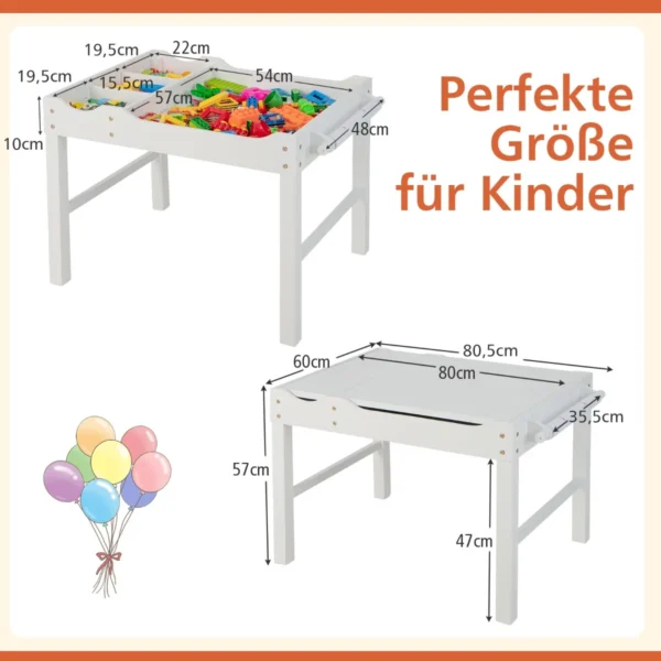 Vaikiškas stalas 80,5x60x57cm baltos spalvos yra funkcionalus ir praktiškas baldų sprendimas vaikų kambariui arba darželiui. Šis stalas su dvipusiu stalviršiu suteikia vaikams galimybę žaisti, rašyti, piešti ar valgyti, skatinant kūrybiškumą ir tvarkos įgūdžius.