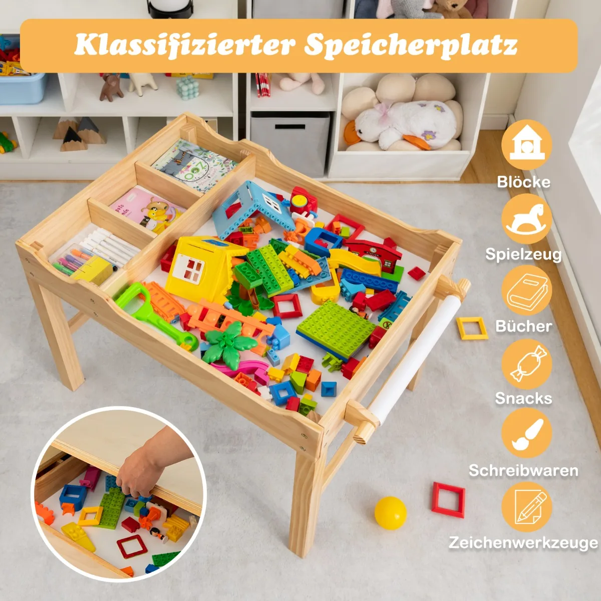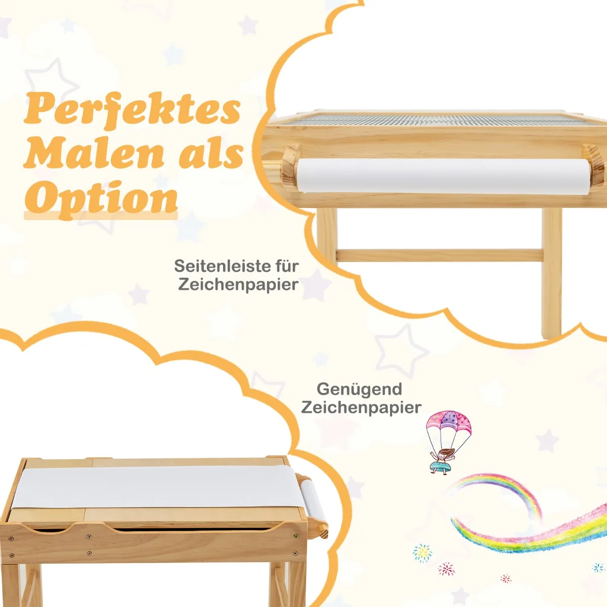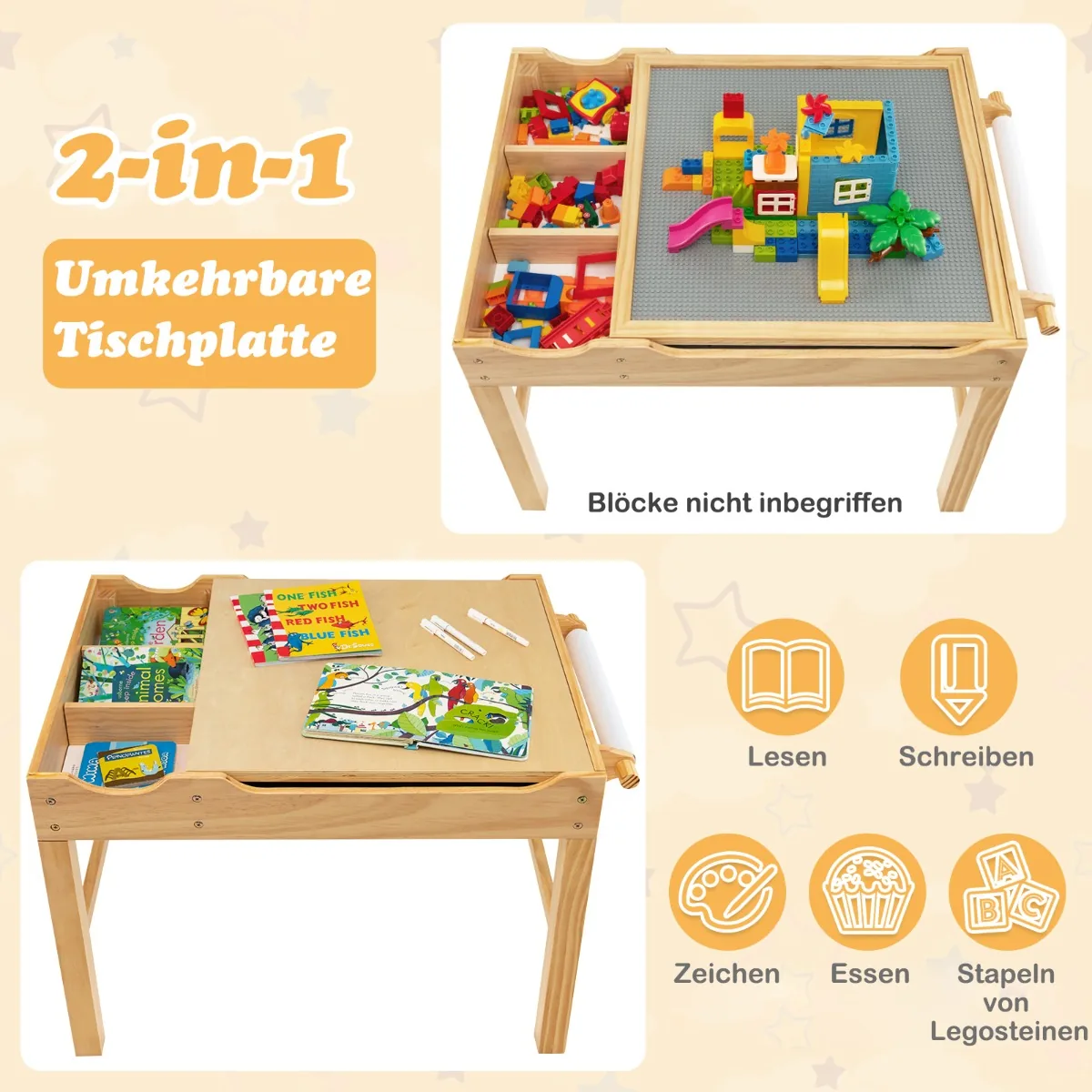 • Dvipusis stalviršis skirtas statybinėms kaladėlėms ir įprastai veiklai, kaip skaitymas, piešimas ar rašymas.