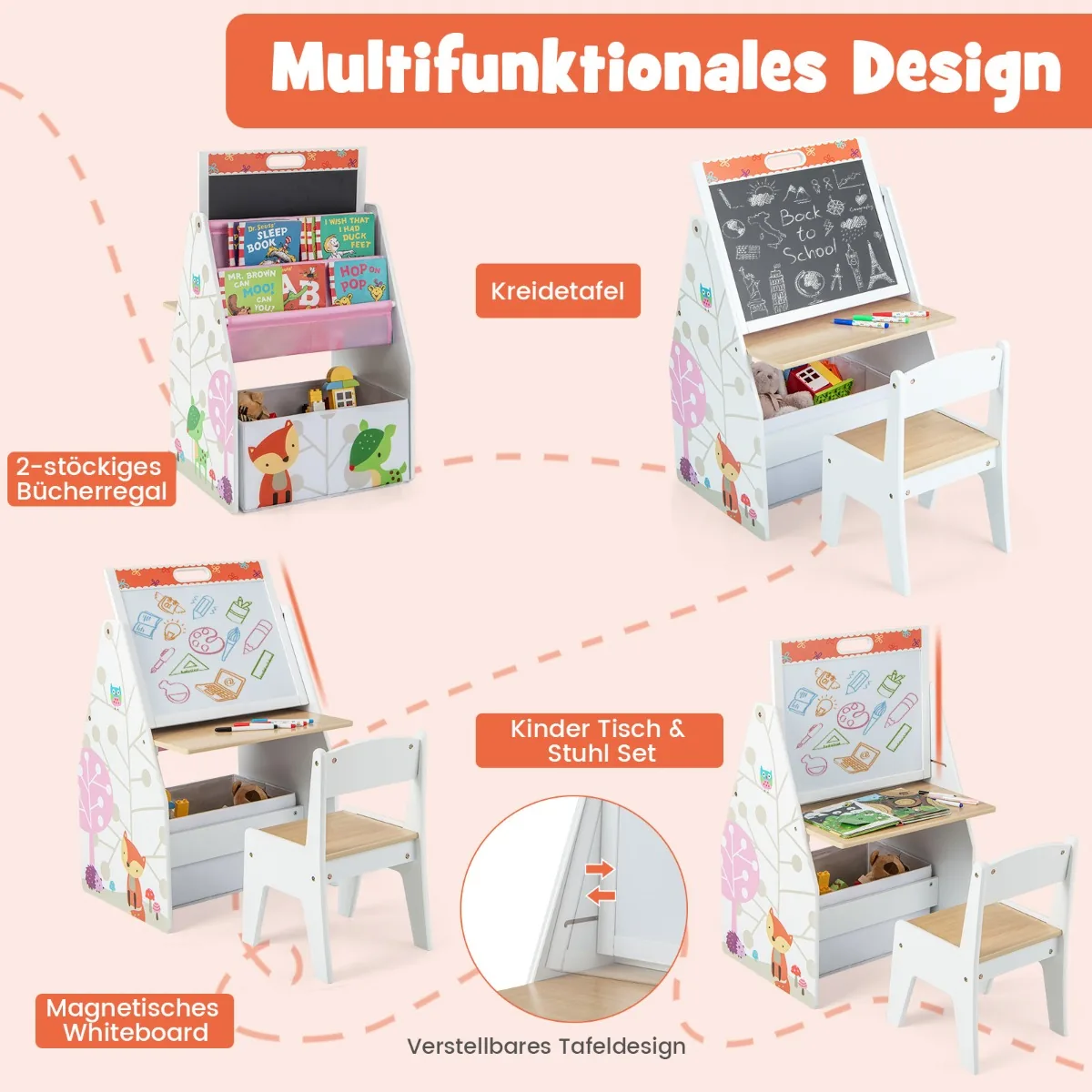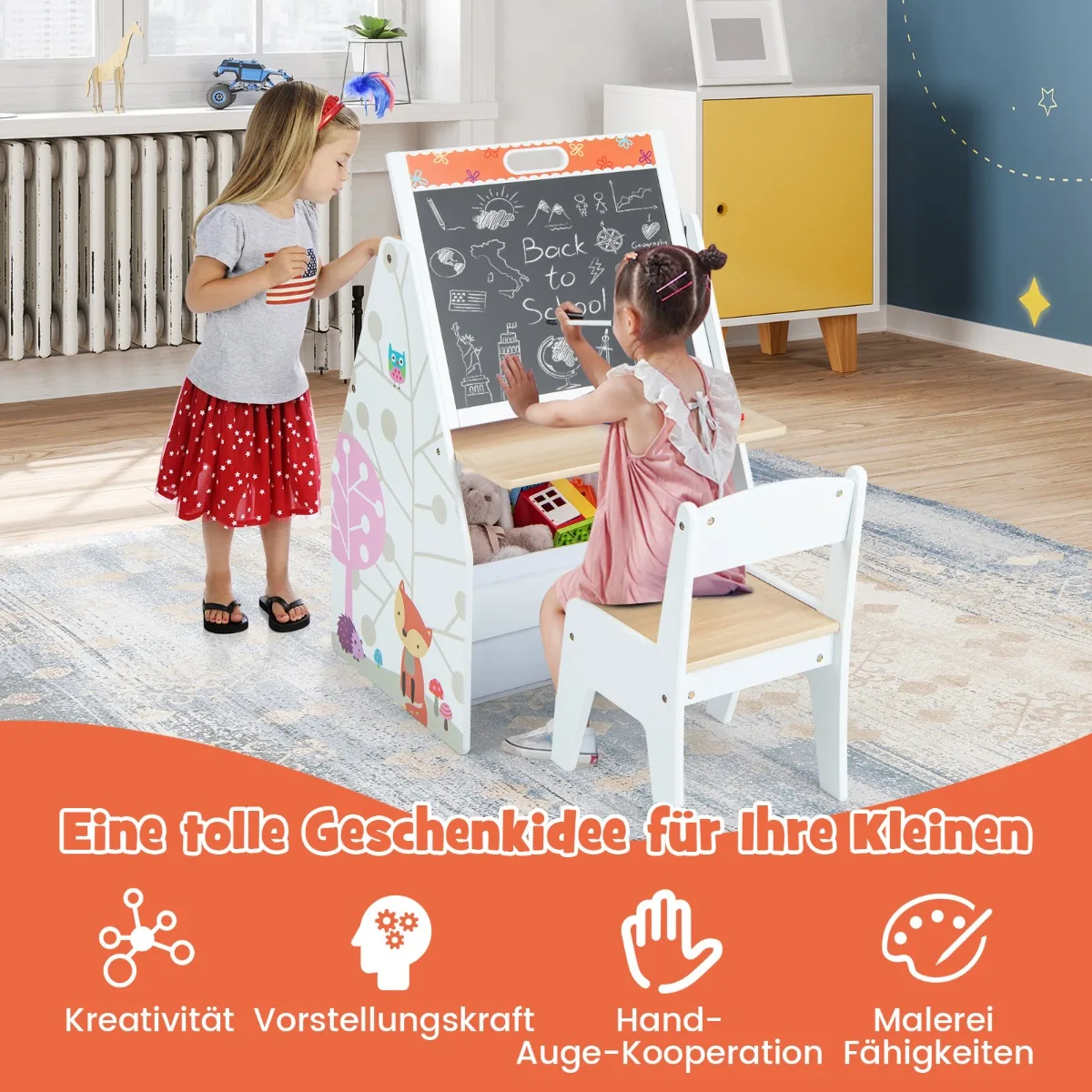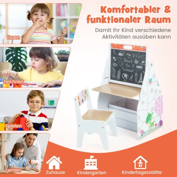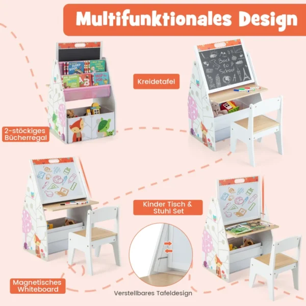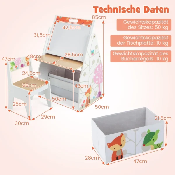 - Universali vaikiško stalo ir kėdės funkcija su meno molbertu.