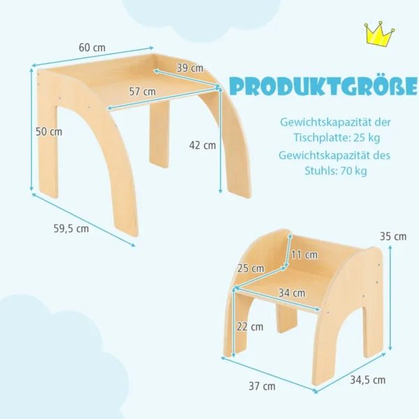 - Daugiafunkcis vaikiškų baldų rinkinys, sudarytas iš stalo ir kėdės.