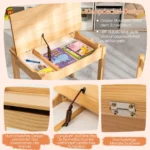 - Rašomasis stalas su lengvai sulankstomu stalviršiu ir didele saugojimo vieta vaikų daiktams.