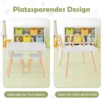 Vaikiškas stalas su kėdėmis baltos ir šviesiai rudos spalvos yra funkcionalus baldų komplektas vaikų kambariui. Šis komplektas skirtas 3–6 metų vaikams ir puikiai tinka piešti, mokytis, žaisti ar valgyti namuose ar darželyje. Patvarios medžiagos ir saugus dizainas užtikrina patogumą ir ilgaamžiškumą.