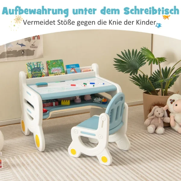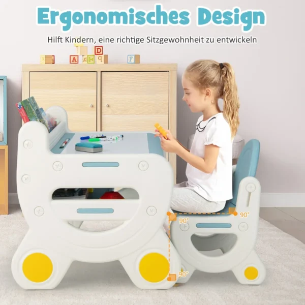 - Vaikiškas piešimo stalas su kėdėmis pagamintas iš tvirtų ir saugių HDPE medžiagų.