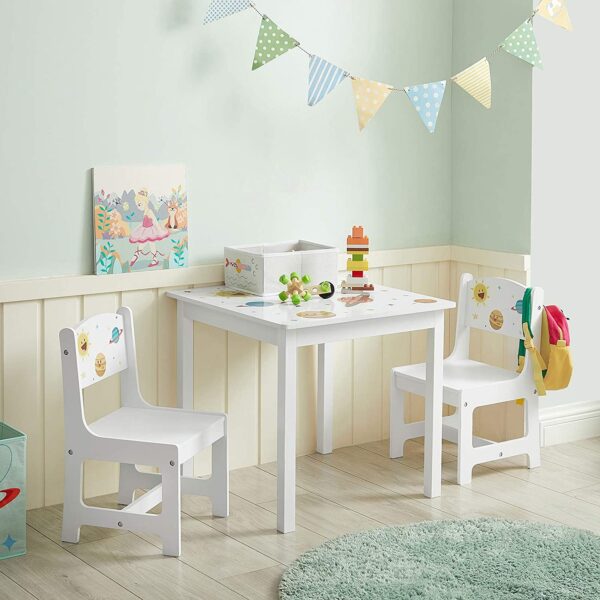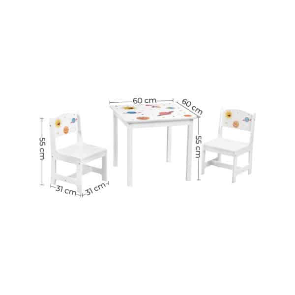 Ar jūsų vaikas mėgsta tyrinėti aplinką ir bando lipti ant mamos stalo? Laikas keistis, kad daugiau nereikėtų jaudintis! Šis vaikiškas stalo komplektas su 2 kėdėmis yra puiki dovana jūsų mažajam nuotykių ieškotojui. Nuo šiol galėsite ramiai dirbti prie savo stalo, o vaikas žais prie savojo.