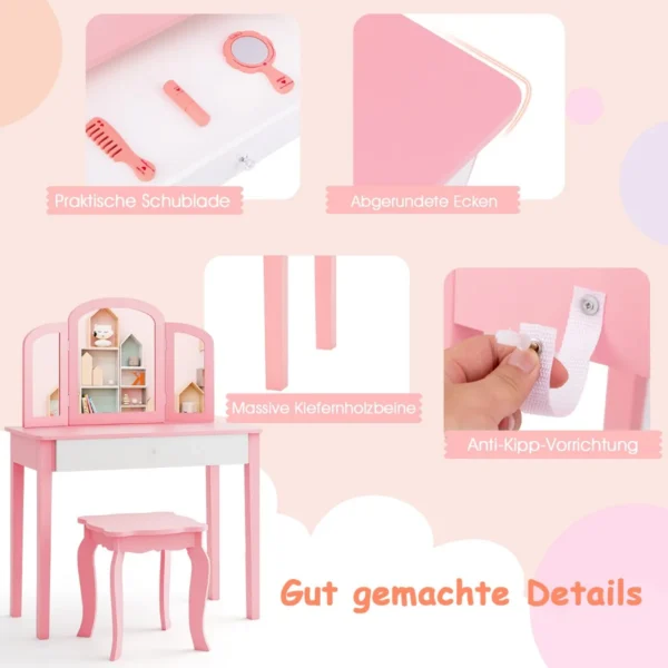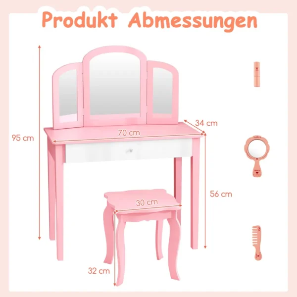 - Komplekte kosmetinis staliukas su trijų padėčių sulankstomu veidrodžiu ir taburetė.